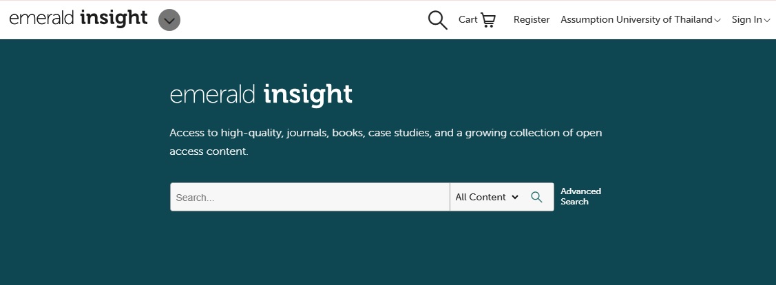 2. Select menu SEARCH > E-Resources A-Z > Emerald eJournal Premier Collection