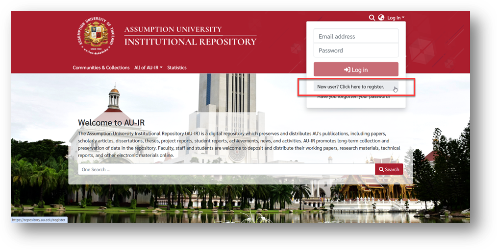 Click “Log In” at the top-right corner of the AU-IR homepage.