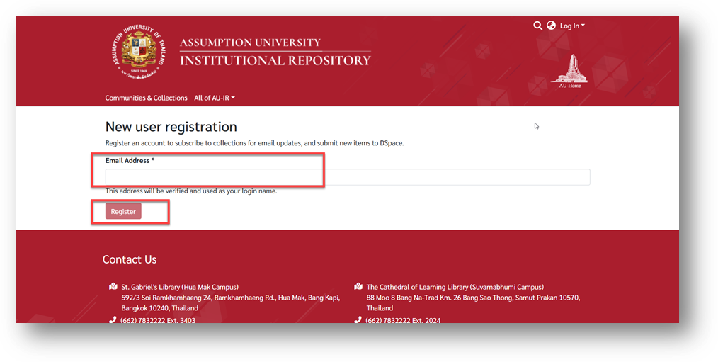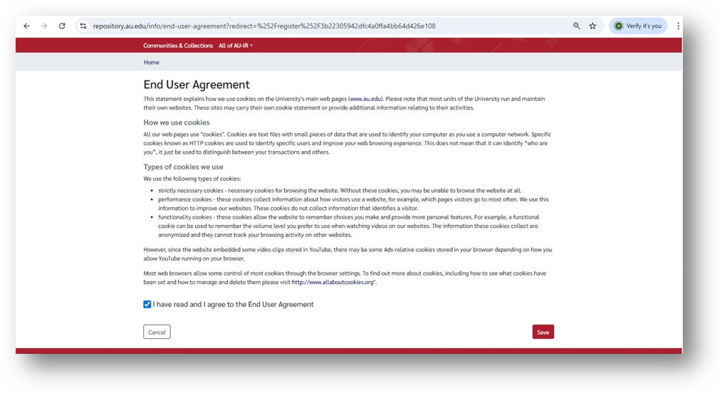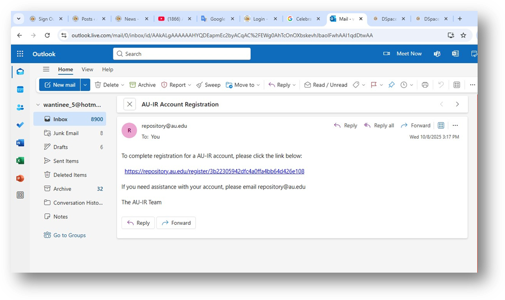 Check your inbox for the AU-IR Account Registration email and click the verification link.