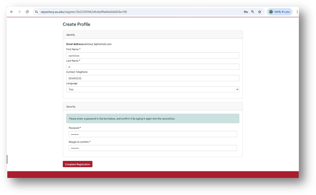 Fill in all required details and click Complete Registration.